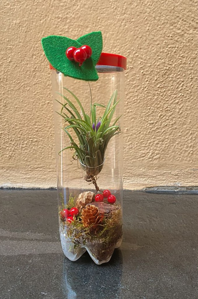 All’interno di ogni Tubió, ospitiamo piante aeree (Tillandsie) e micro-paesaggi naturali composti da muschio, pigne e bacche, creando un oggetto di design unico che: